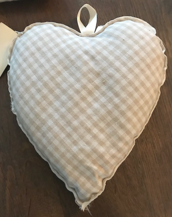 Groot hart met gedrukte tekst en gevuld met lavendel
